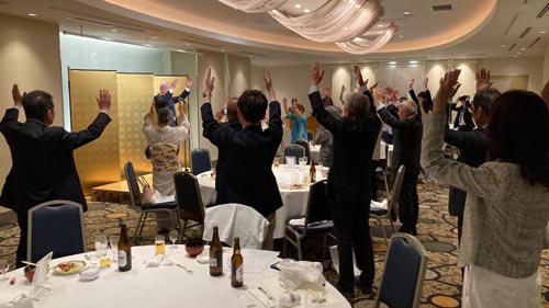 以下の写真は乾杯と閉会時の『万歳三唱』の様子です。